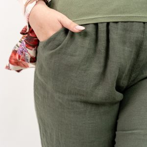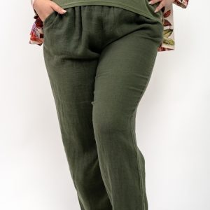 Hlače so izdelane iz 100% lana, kar zagotavlja udobje, zračnost in lahkotnost. Lan je naravna tkanina, ki je še posebej primerna za toplejše vreme, saj omogoča dobro prezračevanje in je prijetna na dotik. Hlače so krojene v klasičnem, rahlo sproščenem kroju, ki se prilega postavi, ne da bi bile pretesne.