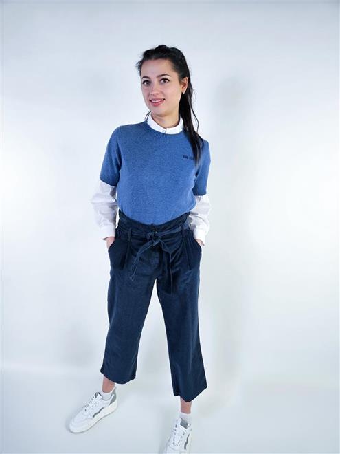 Odkrijte udobje žametnih hlač s priloženim pasom, ki sežejo do 7/8 dolžine. Z visokim pasom, ki dodatno poudarja vašo postavo, te hlače združujejo praktičnost in moderni videz v popolno harmonijo. Žametni material doda pridih razkošja in prefinjenosti, kar naredi te hlače idealne za vsakodnevno nošenje ali za posebne priložnosti. Vključite jih v svojo garderobo za takojšnje izboljšanje vašega stila. S prilagodljivim pasom lahko prilagodite obliko in zagotovite popolno prileganje, medtem ko z dodatki, kot so elegantni čevlji ali modna torbica, lahko te hlače brez težav preoblikujete iz dnevnega v večerni videz. Pripravite se na občudovanje v vsaki situaciji s to vsestransko modno izbiro.
