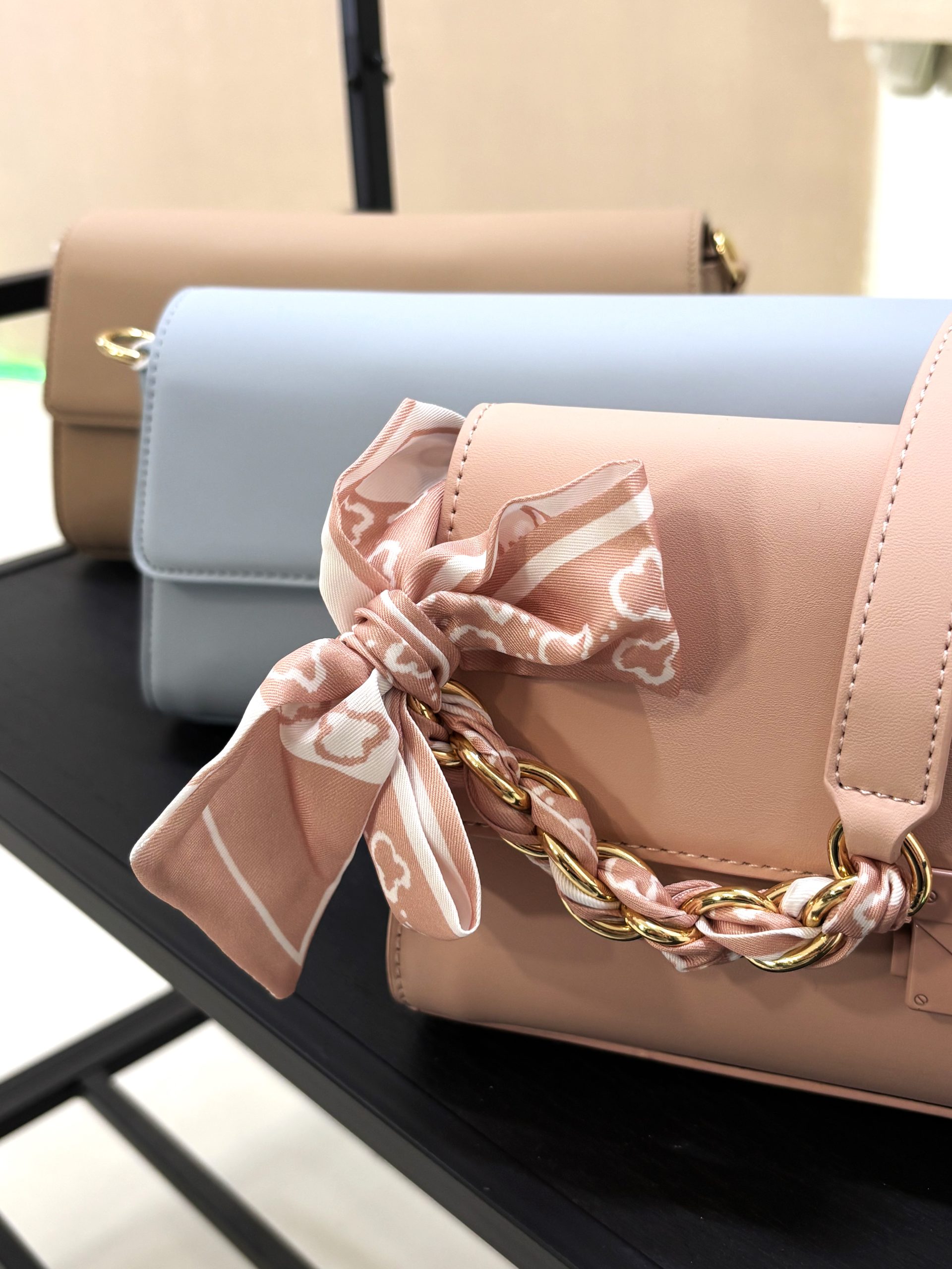 Pravokotna torbica v nežnih odtenkih, bež, roza ali svetlo modre barve izžareva eleganco in svežino. Njena čista, strukturirana oblika omogoča urejen videz ter dovolj prostora za vsakodnevne potrebščine. Torbica ima dve različni ročki – krajšo za nošenje v roki ali na podlakti ter daljšo, nastavljivo ročko za udobno nošenje čez ramo ali kot crossbody. Pastelne barve delujejo mehko in moderno, zato je torbica primerna tako za vsakodnevne opravke kot tudi za bolj sproščene priložnosti.