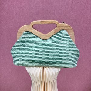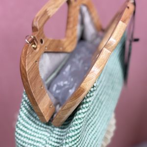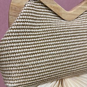 Odkrijte popolno ravnovesje med tradicijo in sodobnim dizajnom s to čudovito oblikovano torbico, ki bo hitro postala vaš najljubši modni dodatek. Njena nežna barva in bogata tekstura kvačkane površine v prostor prinašata pridih topline in prefinjenosti, ki se neopazno zlije z vsako barvno paleto v vaši garderobi. Glavna zvezda torbice je unikatno oblikovan ročaj iz naravnega lesa, ki z ergonomsko obliko in gladko obdelavo ne nudi le udobnega oprijema, temveč služi kot drzen estetski poudarek, ki pritegne poglede. Torbica je zasnovana za sodobno žensko, ki ceni kakovostne materiale in trajnostno modo. Njena kompaktna oblika nudi dovolj prostora za vse vaše nepogrešljive drobnarije, od telefona do najljubše šminke, hkrati pa ohranja svojo elegantno silhueto. Ne glede na to, ali se odpravljate na sproščen sprehod po mestu, poletno poroko ali večerjo s prijatelji, ta torbica vašemu slogu doda piko na i in občutek unikatnosti. Izberite dodatek, ki govori o vaši ljubezni do naravnih materialov in prefinjenega detajla.
