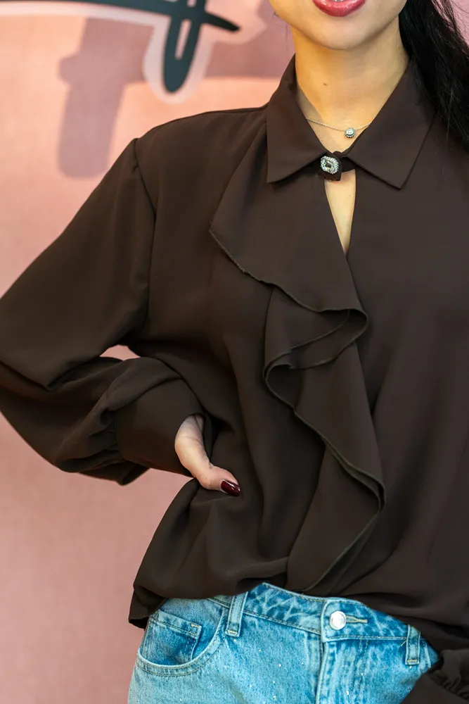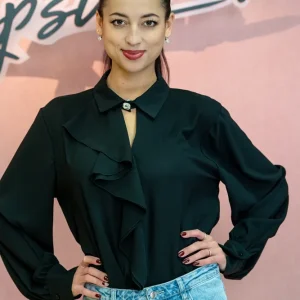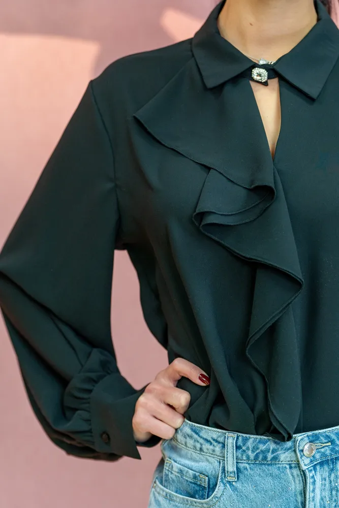 Romantična in elegantna srajca z volančki prinaša pridih ženstvenosti v vsakodnevne in poslovne kombinacije. Izdelana je iz lahkotne, zračne tkanine, ki lepo pade in se udobno nosi skozi ves dan. Srajco krasijo volančki v srednjem delu, ki ustvarijo prefinjen in hkrati igriv videz. Klasičen kroj poskrbi za lepo prileganje, medtem ko volančki dodajo občutek lahkotne elegance. Popolna je za kombiniranje s klasičnimi hlačami, krili ali kavbojkami, lahko pa jo nosite samostojno ali pod suknjičem za bolj urejen, sodoben videz. Idealna izbira za vse, ki cenijo detajle in brezčasno eleganco.