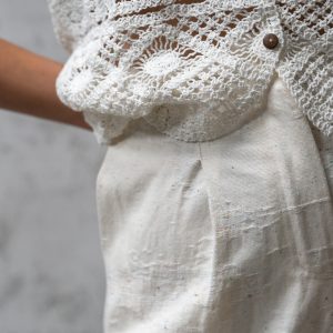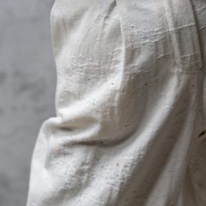 Športno- elegantne hlače v barvi smetane so popolna izbira za vse, ki prisegate na udobje in brezčasen stil. Izdelane so iz bombaža , ki s svojim unikatnim videzom in subtilnimi barvnimi nitkami dodaja pridih pristnosti ter ročne izdelave. Sodobno zasnovan visok pas in sproščen, širok kroj poskrbita za popolno prileganje in lahkotno gibanje skozi ves dan. Dolžina do gležnjev omogoča, da jih enostavno kombinirate tako s sandali za sproščen poletni videz kot tudi z elegantnimi čevlji za bolj dovršen videz. Gre za hlače, ki združujejo minimalizem, udobje in sofisticiranost – kos, ki ne sme manjkati v garderobi vsake ženske z občutkom za naravno eleganco.