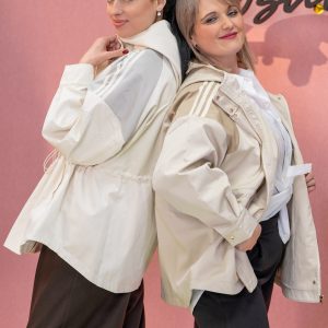 Ženska parka s kapuco v svetlih tonih, elegantnem odtenku deluje moderno in minimalistično. Izdelana je iz gladkega, strukturiranega materiala, primernega za prehodno vreme. V pasu ima nastavljivo vrvico, ki omogoča lepo prileganje in poudari silhueto. Zapenja se z zadrgo in pritiskači v zlati barvi, ki dodajo prefinjen detajl. Kontrastni vložki na ramenih in rokavih subtilno popestrijo videz, medtem ko kapuca in daljša linija nudita dodatno funkcionalnost in udobje za vsakodnevno nošenje v urbanem okolju.