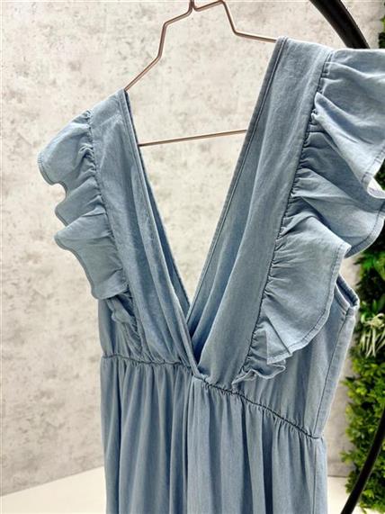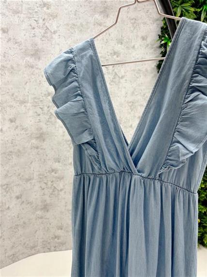 Dolga jeans obleka je popolna izbira za poletne dni. Izdelana iz lahkotnega in zračnega denim materiala, zagotavlja udobje in svežino skozi ves dan. Njena vsestranska zasnova omogoča enostavno kombiniranje z različnimi dodatki, kar jo naredi primerno za različne priložnosti. S to obleko boste vedno videti modno in sproščeno, ne glede na to, ali se odpravljate na plažo, piknik ali sprehod po mestu.